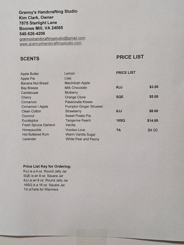 (540) 526-4206 grannyshandcraftingstudio@gmail.com We are located in Boones Mill, Virginia. We are available by appointment. We are able to meet at Boone's Country Store in Wirtz, VA, or other locations convenient to our customers.